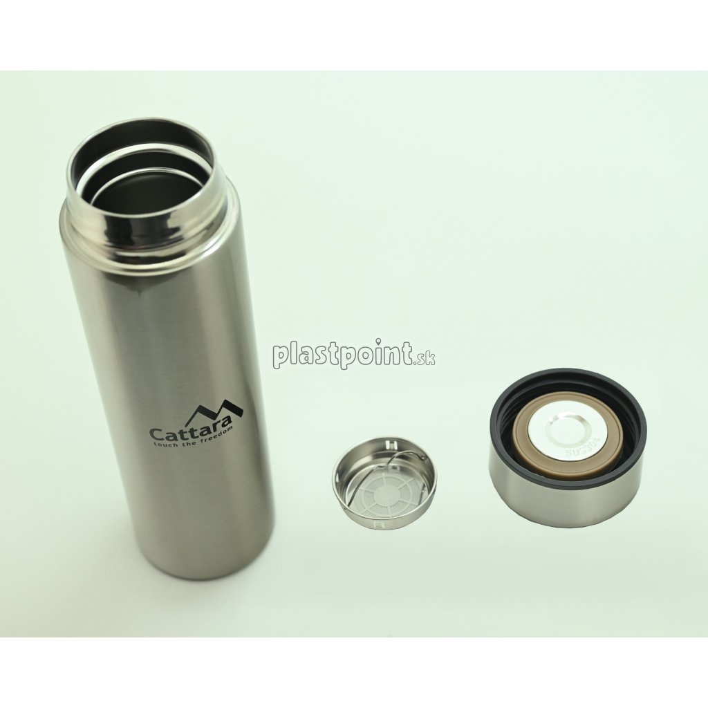 Vrchná časť termosky je opatrená tesniacim viečkom s tlačidlom pre ľahké nalievanie.