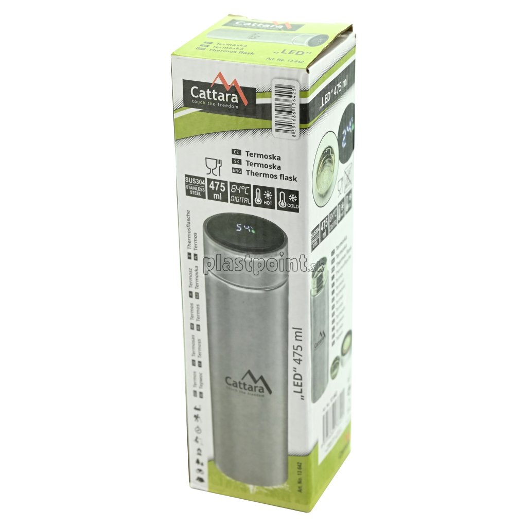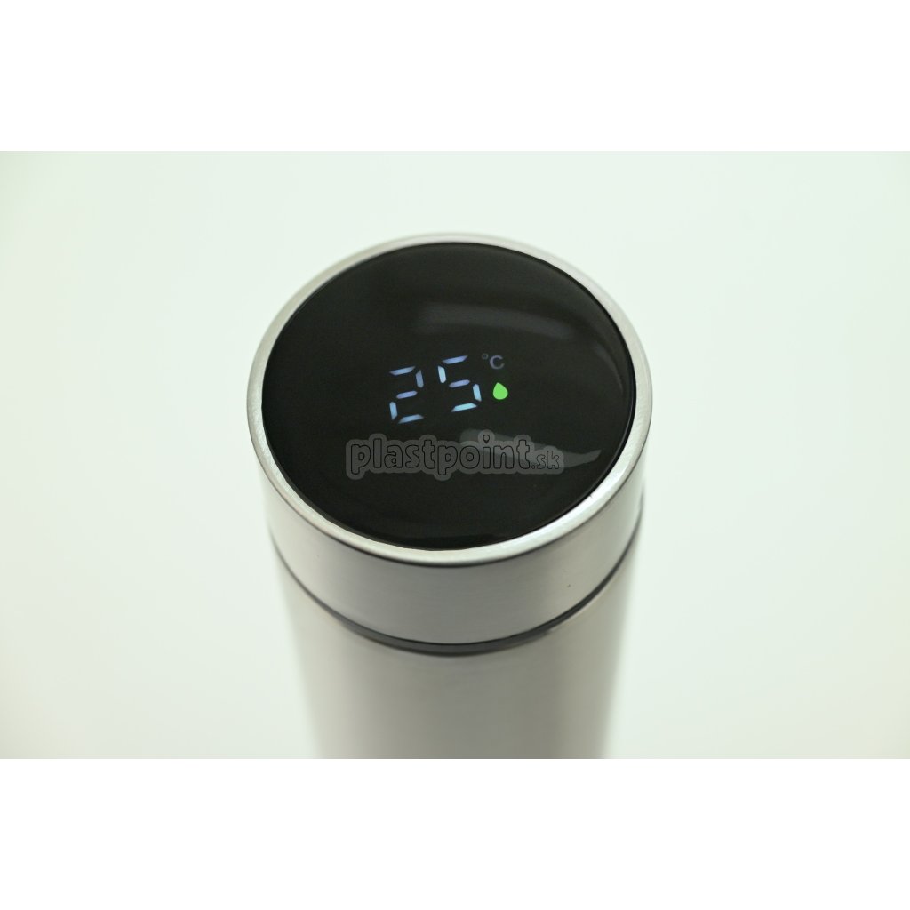 Termoska LED s objemom 475 ml s teplomerom a sitkom vo veku.
