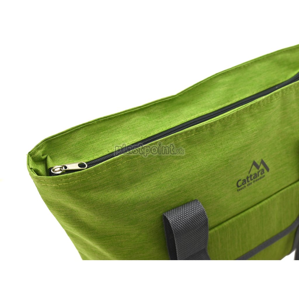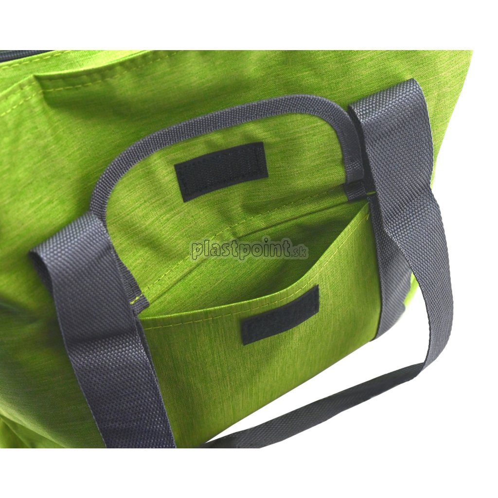Vyrobená je z odolného polyesteru s nízkou hmotnosťou 210 g, v zelenom prevedení vhodnom do prírody. Pre pohodlné prenášanie je taška doplnená širokým popruhom šedej farby.