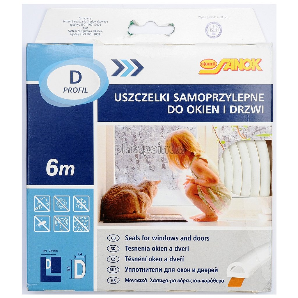 Tesnenie do okien a dverí samolepiace 9x7,4mm TYP D biele 6M