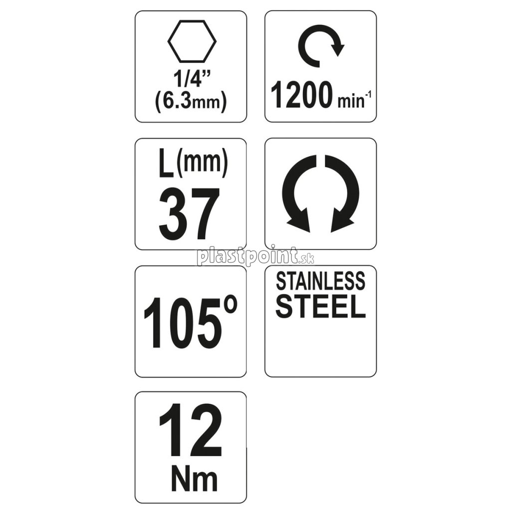 Zhotovenie z kvalitnej uhlíkovej ocele s maximálnym krútiacim momentom 12 Nm (maximálna rýchlosť otáčania 1200 ot./min)