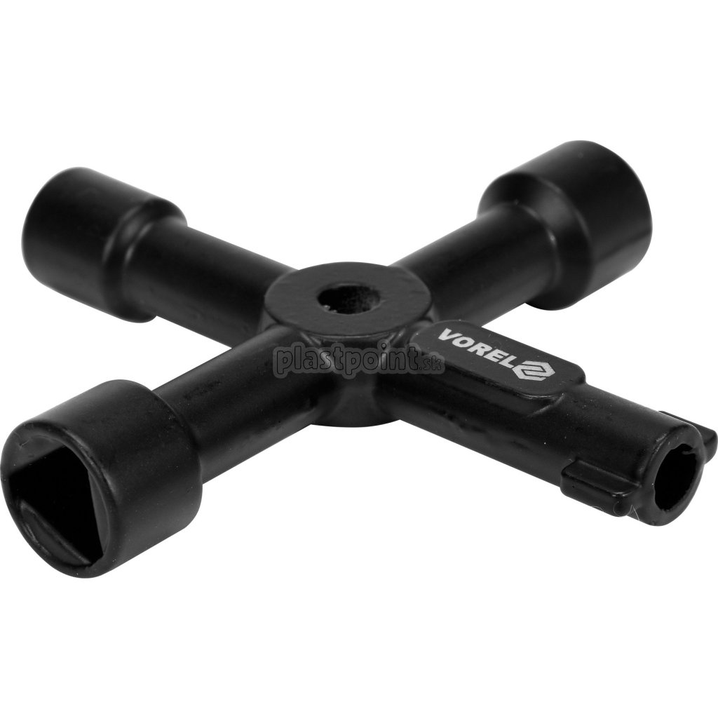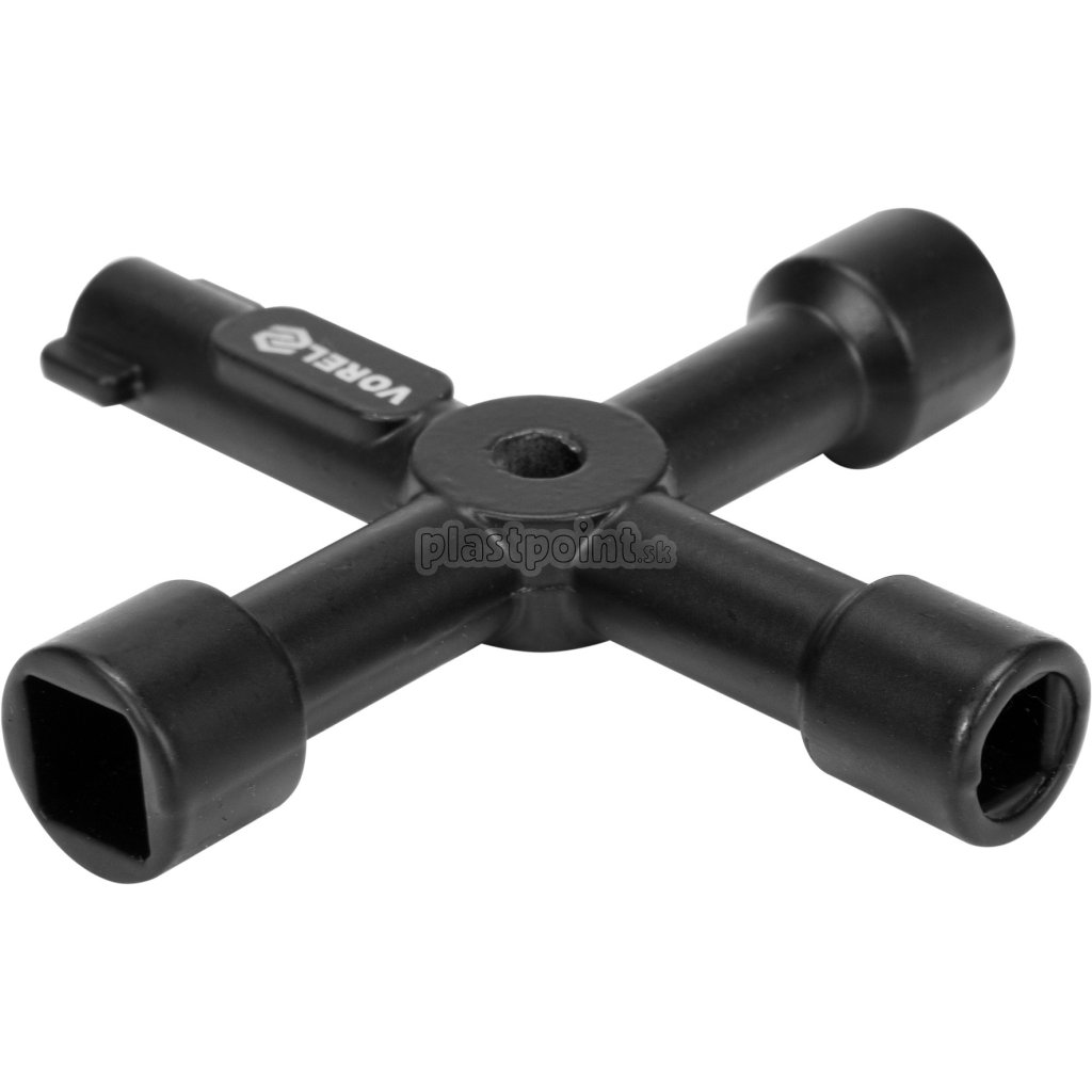 Kľúč je vhodný na otvorenie najpoužívanejších uzáverov skríň pre odpočty vody, plynu, elektriny a ďalších podob. špecifikácia nástrojov štvorec 6 mm, štvorec 8 mm, trojuholník 10 mm a kruh s krídlami priemer 6 mm. Kľúč je zhotovený z liatiny na báze zinku. Povrch je lakovaný čiernym práškovaním.