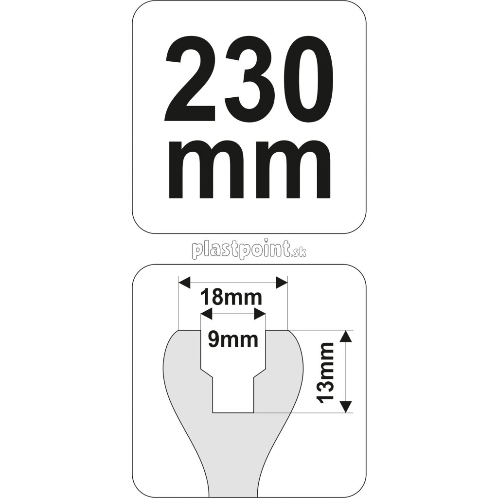 Sťahovák má dĺžku 230 mm a šírku 18 mm.