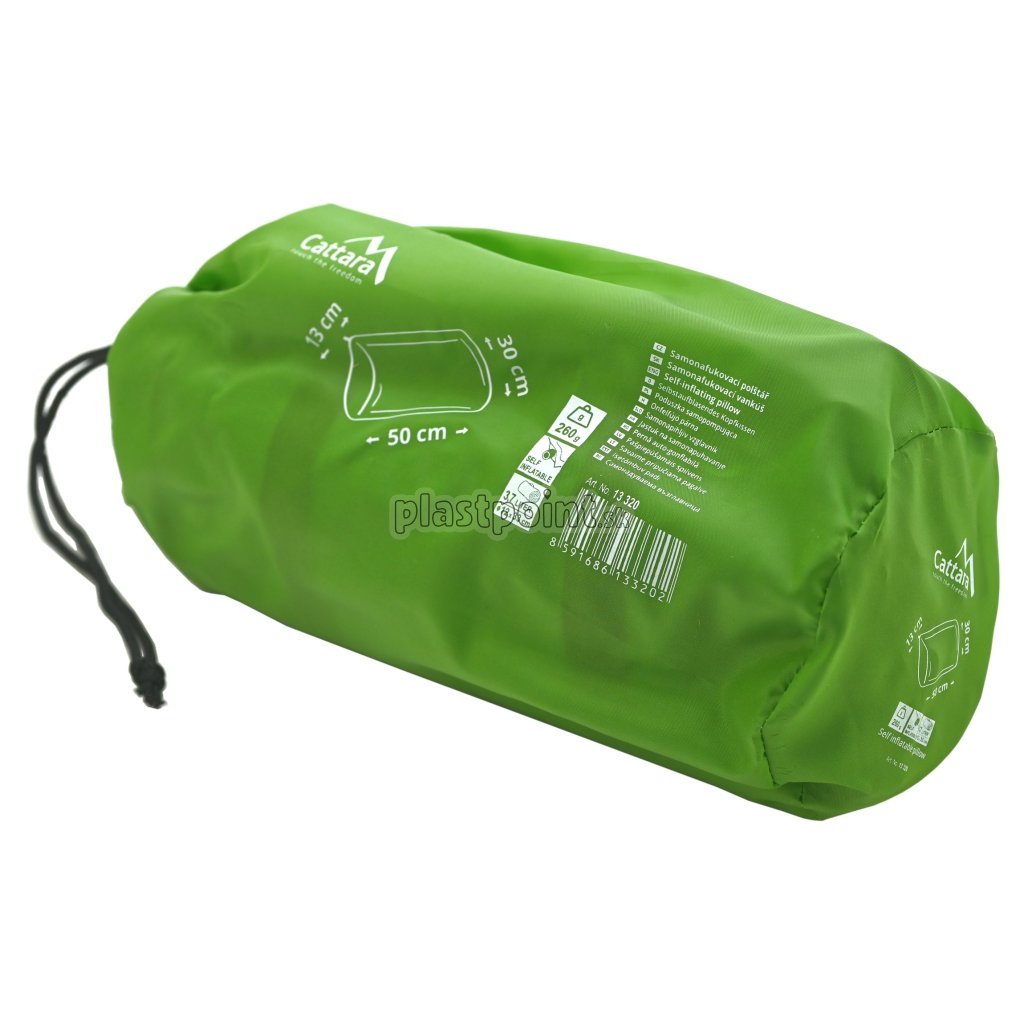 Rozmery 50 x 30 cm a výška 13 cm, robia z vankúša pohodlný a príjemný doplnok pre kemping, najmä pri prenocovaní v spacom vaku. Vankúš však môže byť využitý aj ako pohodlná, izolačná podložka na sedenie.