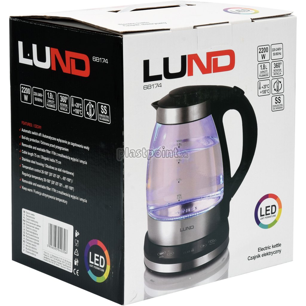 Varná kanvica sklenená s udržiavanou teplotou LED 1,8L