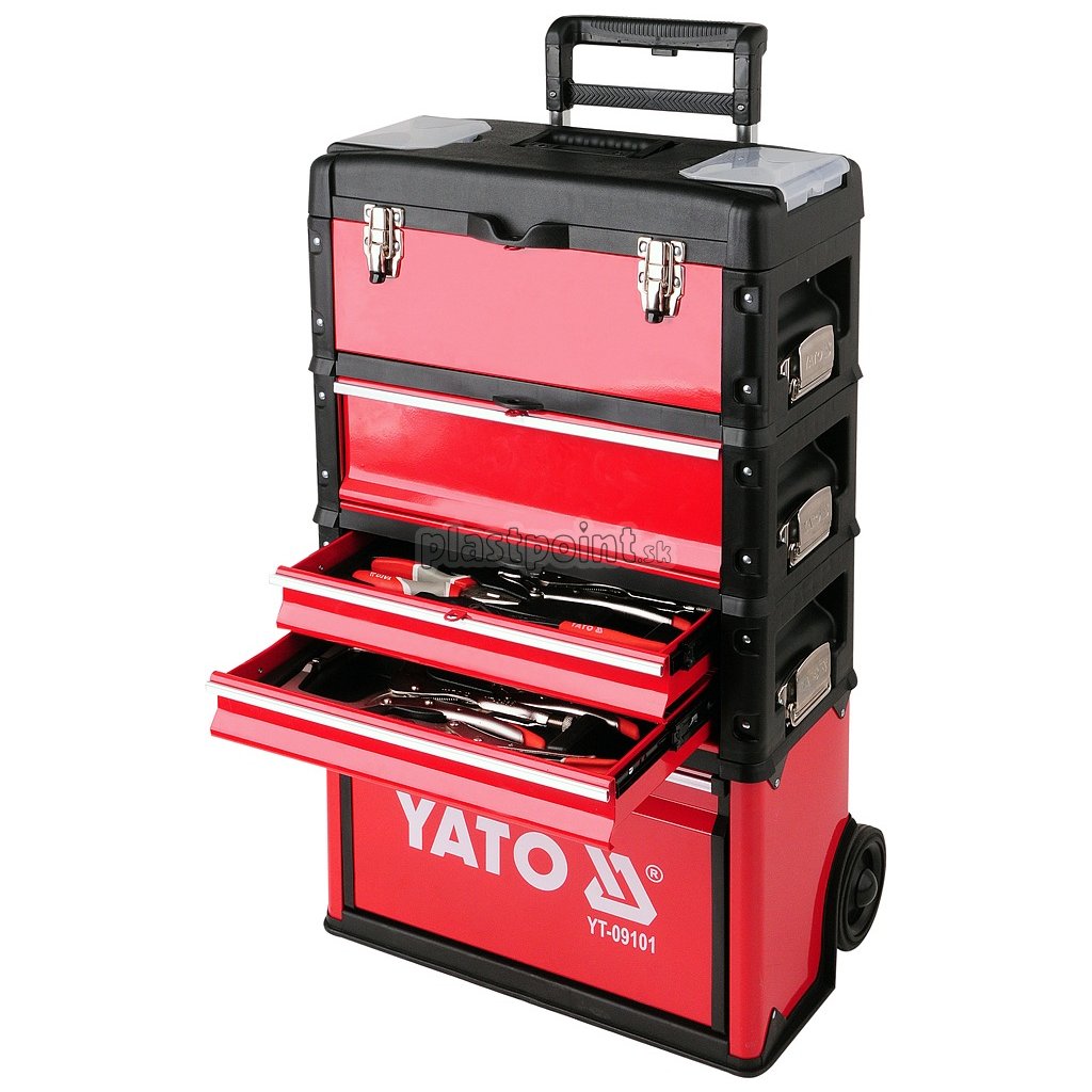 Modulárna trojdielna servisná skriňa so vstavanými kolieskami a teleskopickou rukoväťou, pre jednoduché prenášanie.