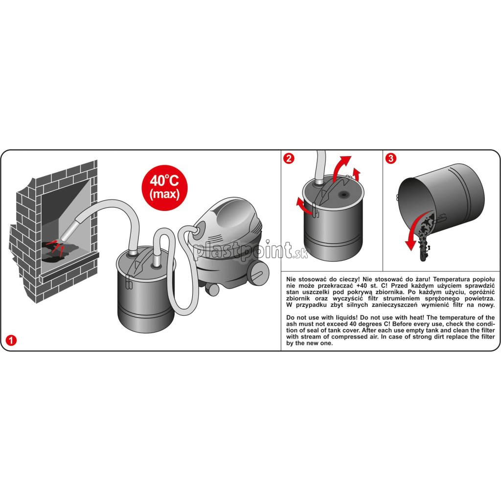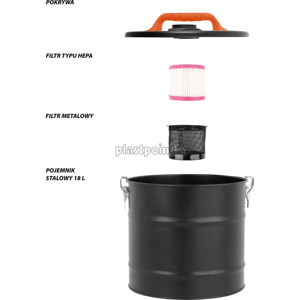Veľmi kvalitné filtračné zariadenie, odlučovač popola od firmy Vorel. Po pripojení k vysávaču pôsobí ako filter, ktorý zastavuje nečistoty zostávajúce v peci. Ideálne na čistenie krbu. Je vybavený PET filtrom namontovaným v plastovom koši. Kovová nádrž s objemom 18 l sa dá veľmi rýchlo vyčistiť vďaka použitiu 2 svoriek.