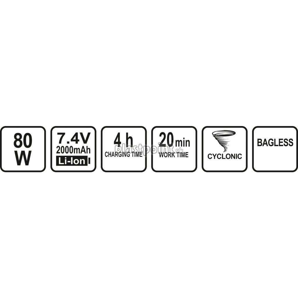 | Akumulátor | 7,4V Li-Ion 2000 | Príkon vysávača | 80 W |