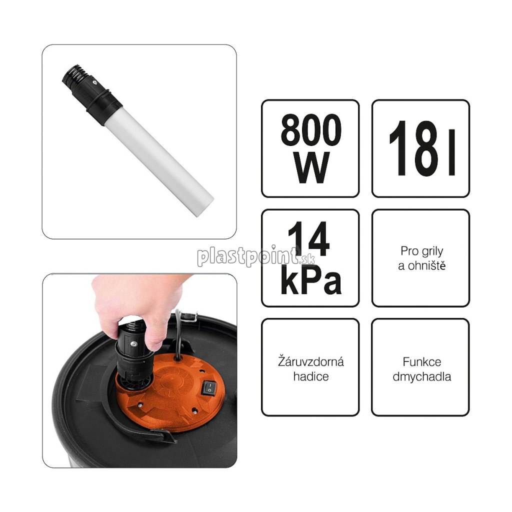 Vysávač je vybavený viacstupňovým filtračným systémom (filter typu Hepa a nečistotový filter), má ohybnú saciu hadicu, pojazdné kolieska a tiež disponuje funkciou dúchadla (fúkanie vzduchu). je zakončená hliníkovou sacou hubicou. Nádoba na popol je vyrobená z nehrdzavejúcej ocele a jej objem je 18 litrov.