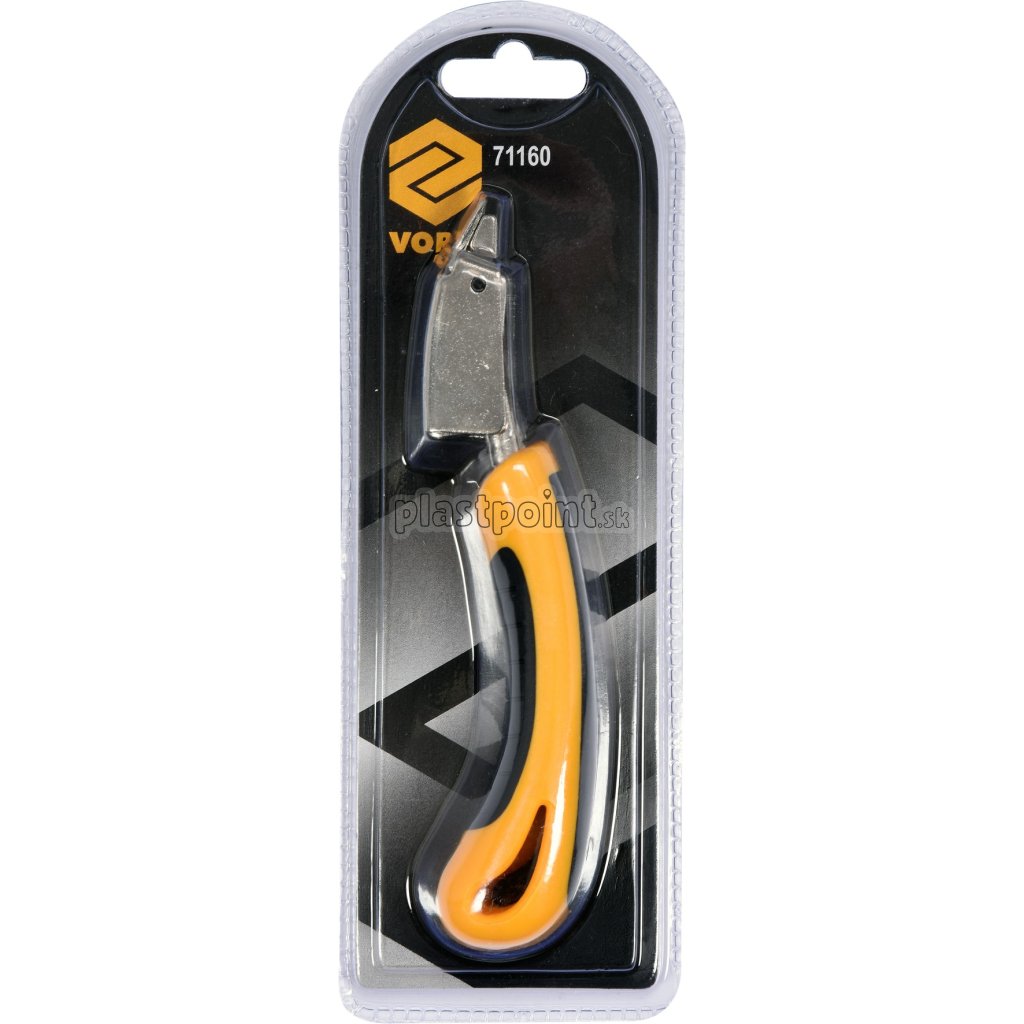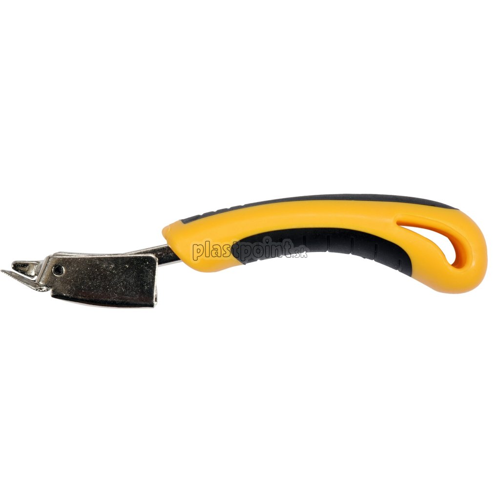 Vyťahovač sponiek je vyrobený z kovu a má ergonomickú dvojkomponentnú rukoväť.