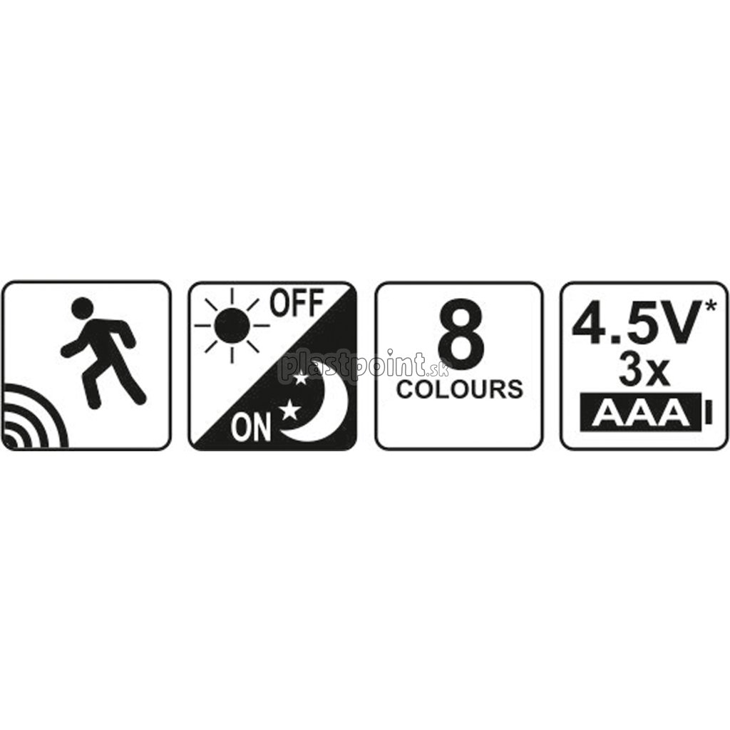Aby nedošlo k zbytočnému vybitiu batérie, vstavaný svetelný senzor zaistí, že sa lampa rozsvieti len v tme.