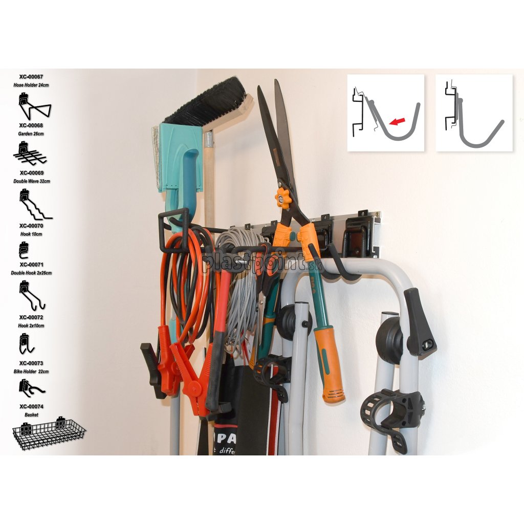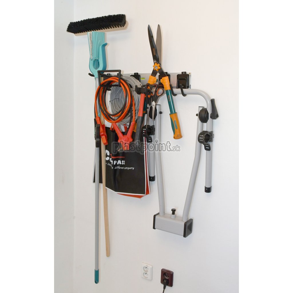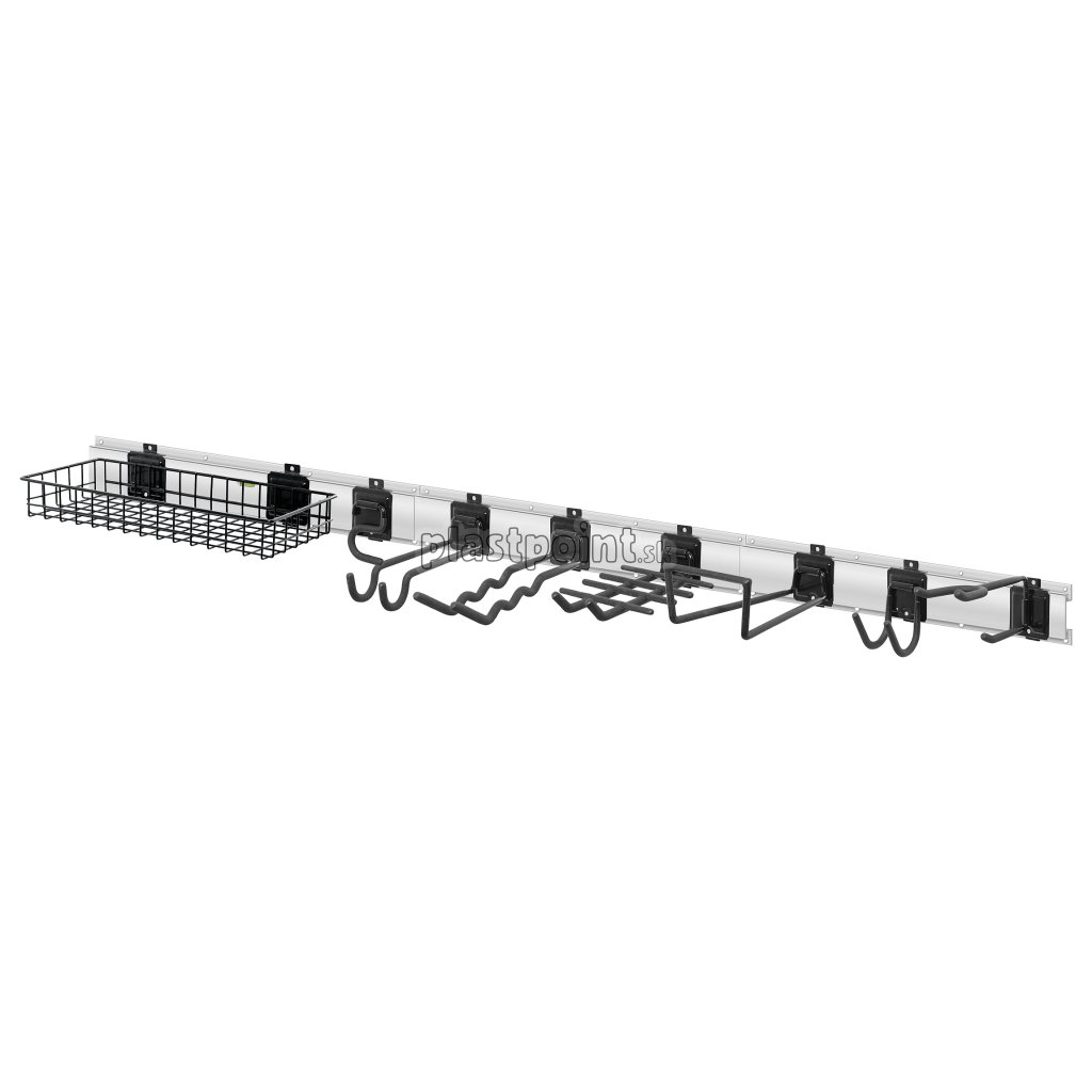 Praktický závesný systém FAST TRACK je vhodný na usporiadanie a dlhodobé uskladnenie nielen záhradného náradia, hadíc, lopát a ďalšieho náradia.