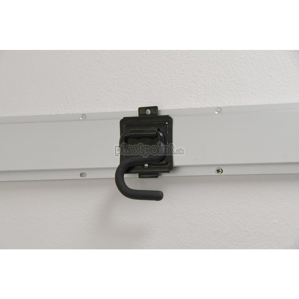 Závesný prvok pre systém FAST TRACK s klasickým tvarom háčika na uchytenie rôznych predmetov, najmä náradia s násadami.