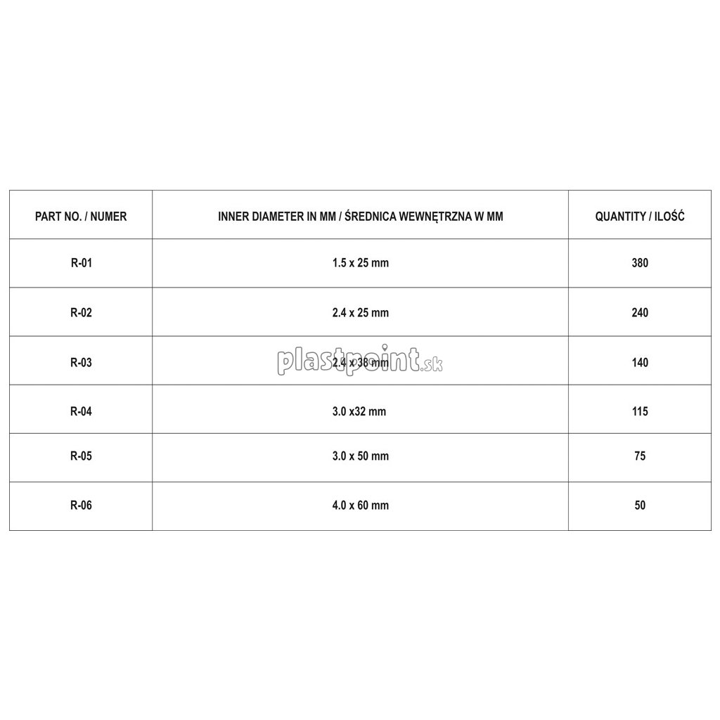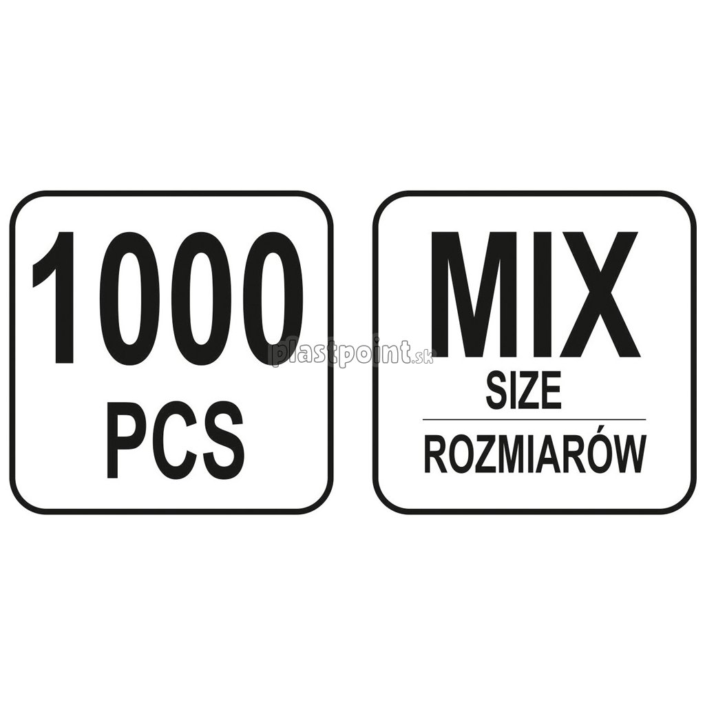 Sada obsahuje 1000 kusov závlačiek rôznych dĺžok a priemerov.
