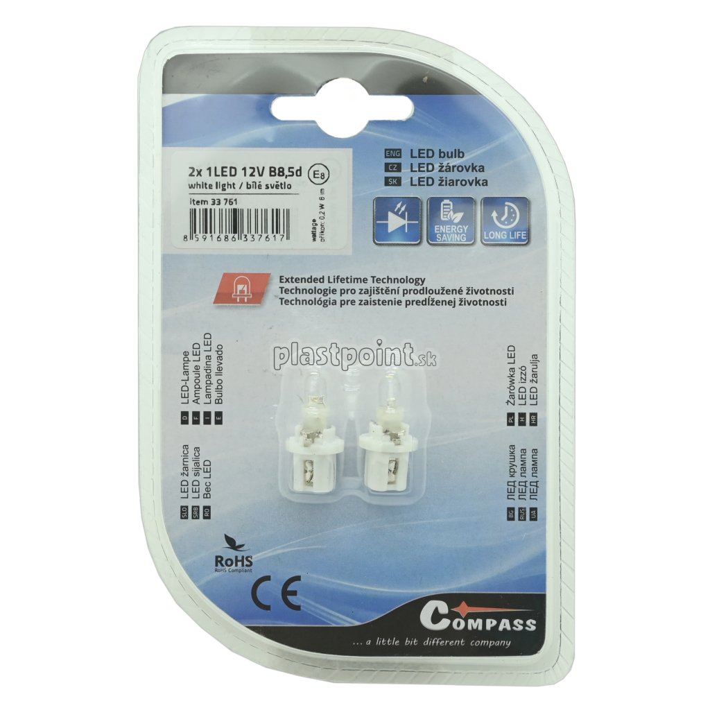 Žiarovka 1LED 12V B8,5d biela 2ks