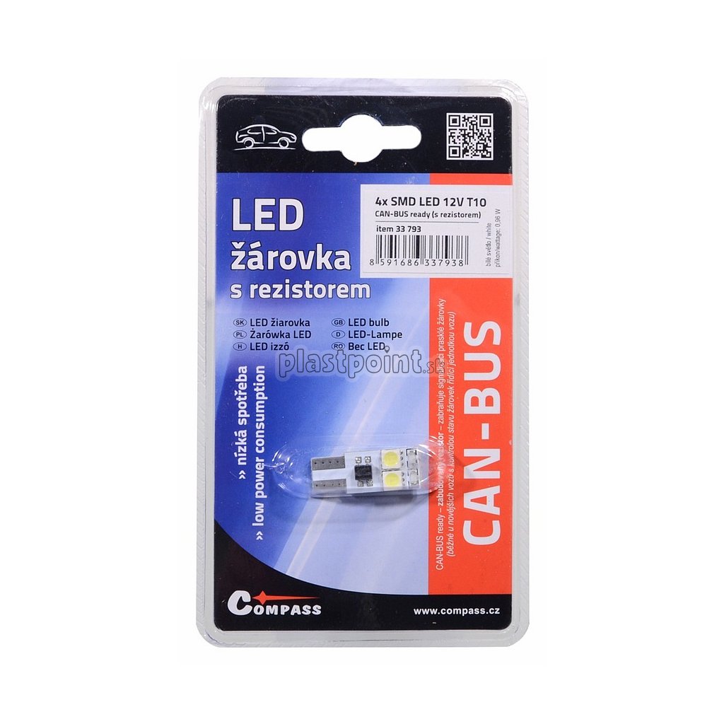Žiarovka 4 SMD LED 12V T10 s rezistorom CAN-BUS ready biela
