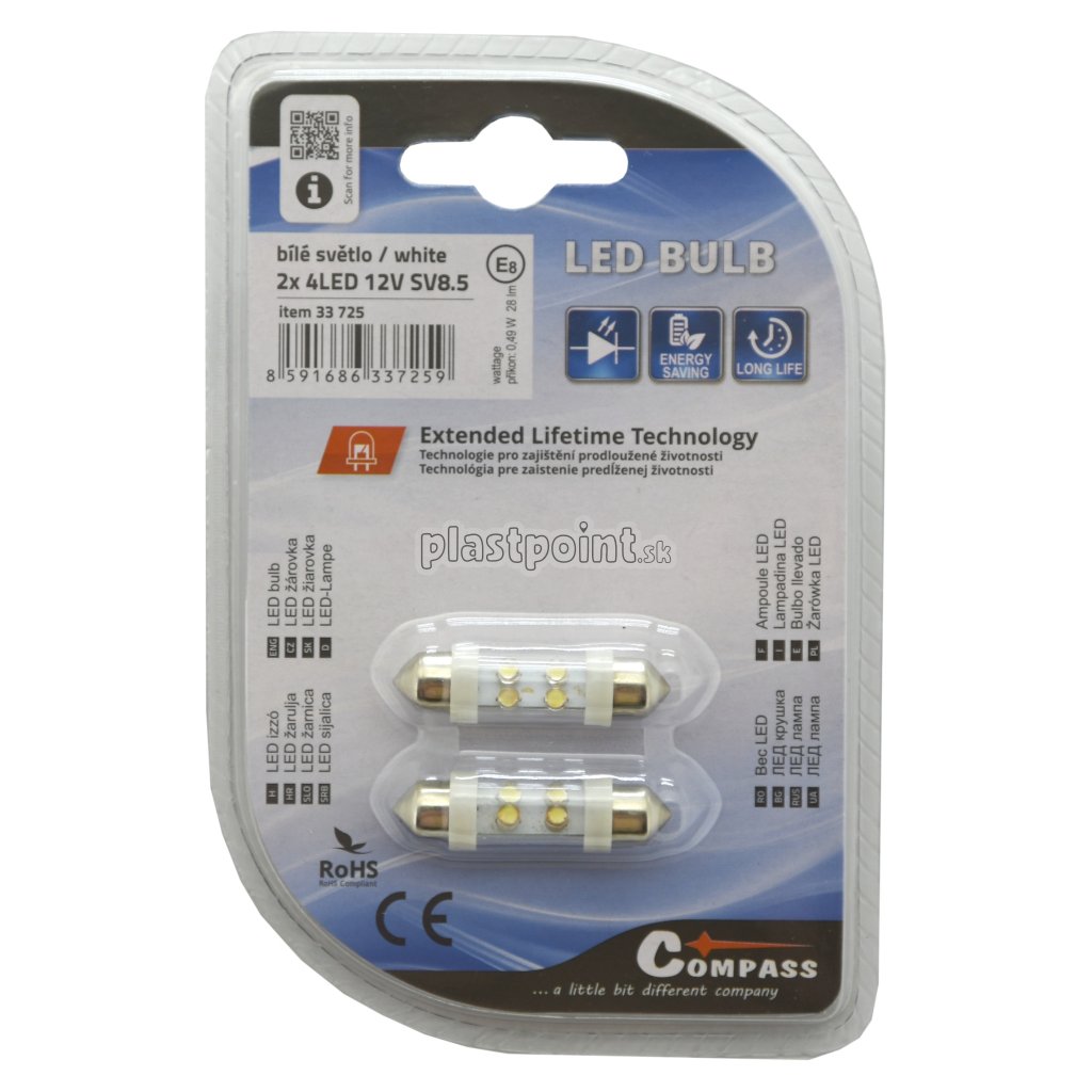 Žiarovka 4LED 12V suf. SV8.5 38mm biela 2ks