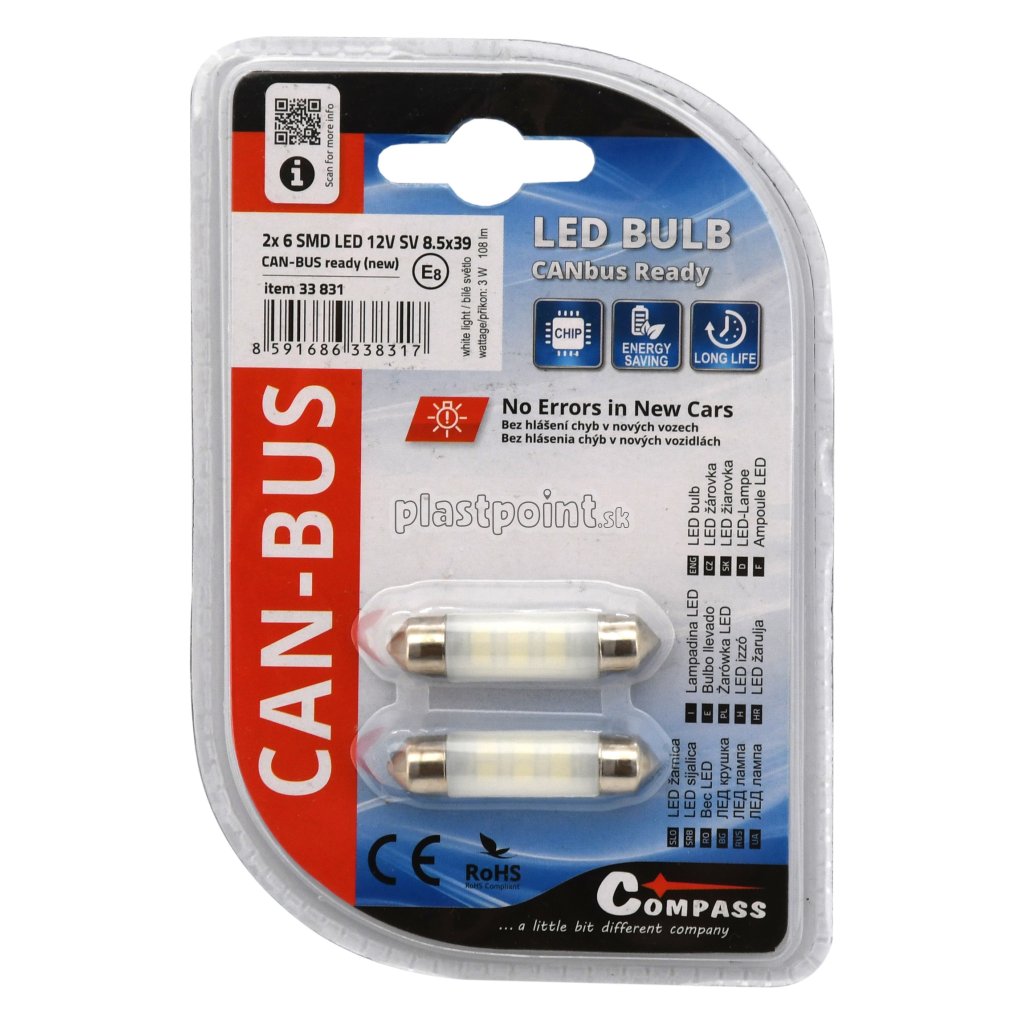 Žiarovka 6 LED SMD 12V suf.10X39 SV8.5 NEW-CAN-BUS biela 2ks