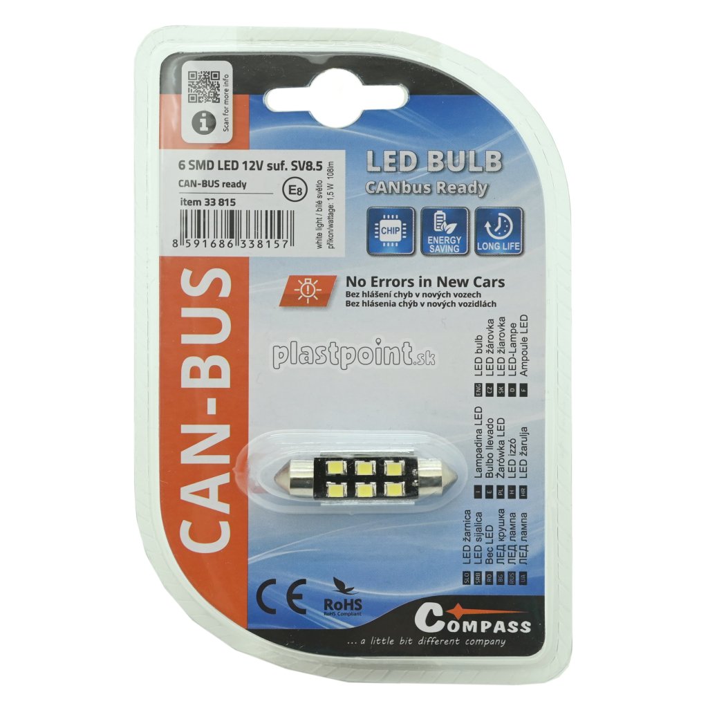 Žiarovka 6 SMD LED 12V suf. SV8.5 38mm s rezistorom CAN-BUS biela