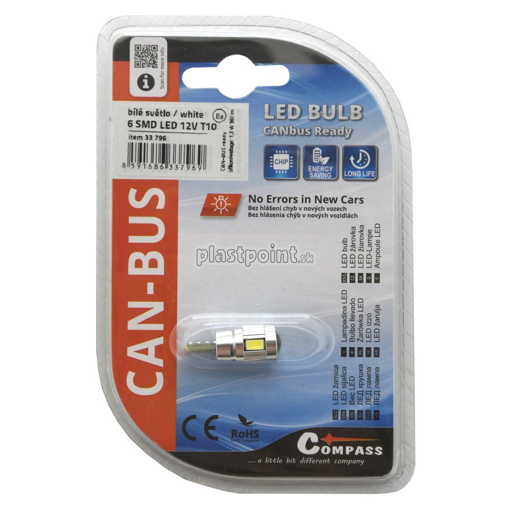 Žiarovka 6 SMD LED 12V T10 s rezistorom CAN-BUS ready biela