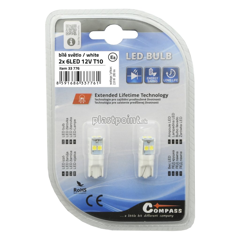 Žiarovka 6LED 3030 12V T10 biela 2ks