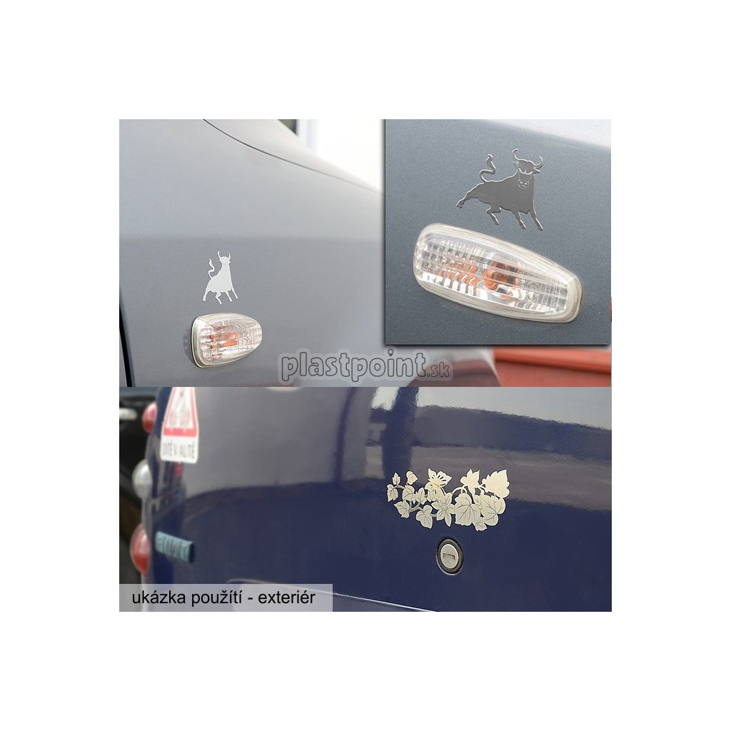 Samolepiaca kovová dekorácia s lesklou povrchovou úpravou v kombinácii s jemným gravírovaním. Elegantný doplnok automobilu - ľahké nalepenie. Vhodné aj ako doplnok interiéru vozidla.